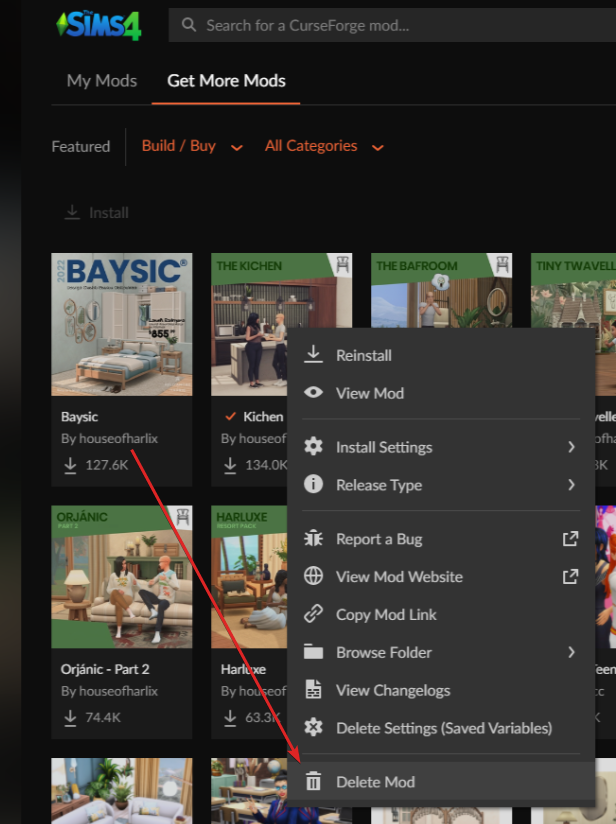 When searching for mods, when someone installs a mod and changes their mind, there should be an easy way to uninstall or delete it without having to leave your place