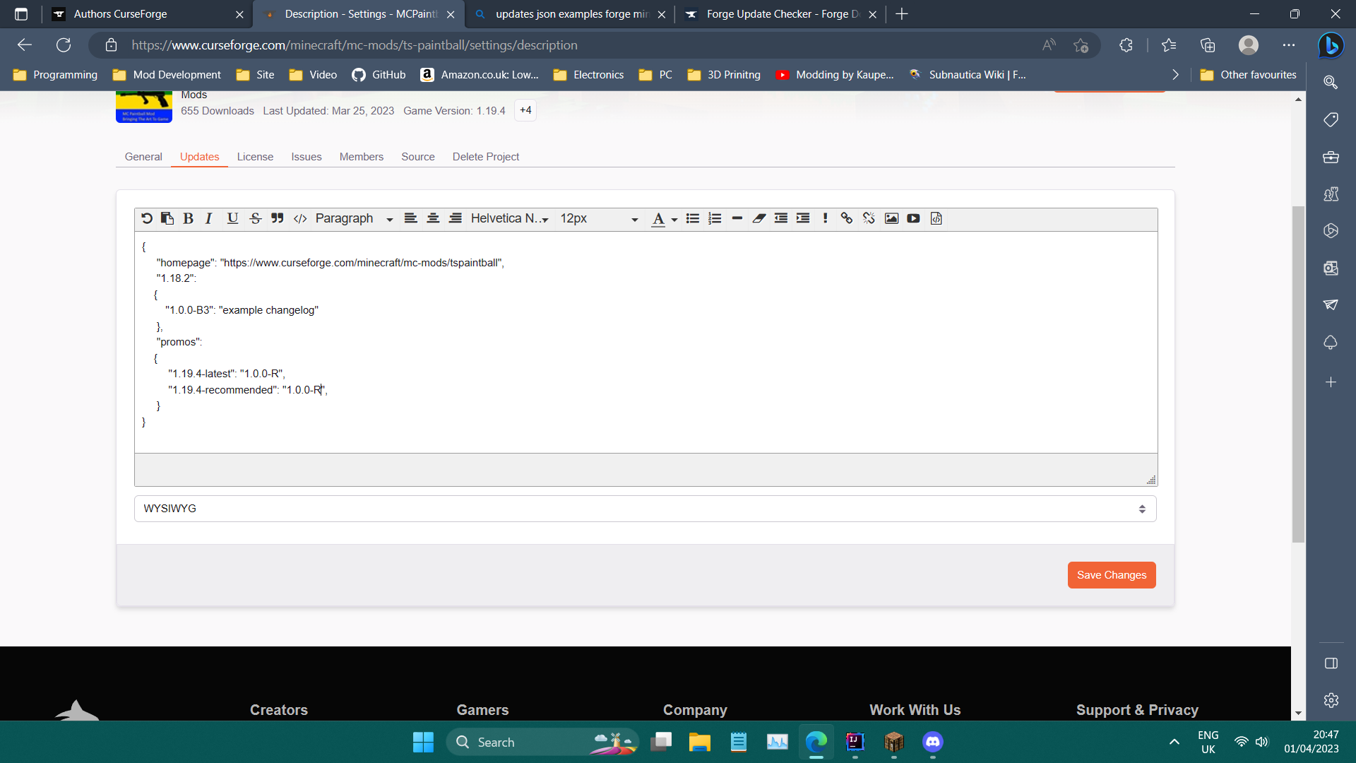 For example the update json url would be https://beta.curseforge.com/minecraft/mc-mods/awsomemodexample/updates.json then the developer can edit this json when they upload a new file onto curseforge. This would remove the need for either a git repository or a custom domain. Instead we would have the ability to keep track and update it all from the manage project menu. It would look something like the screenshot below (inspect element used to create a sample image for curseforge team)