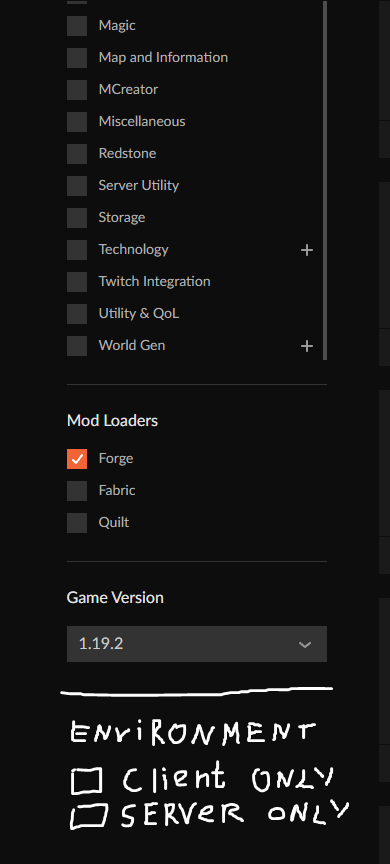 ..On the old version of the site, it was an option to search Client or Server mods, but when i searched for Client mods i often found mods that still require to be installed on the Server side, despite it tagged as Client mod.