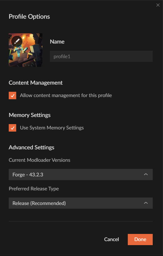 You could add singular mods to an individual modpack. via the dropdown. the button could say "add to modpack" or "download to profile".