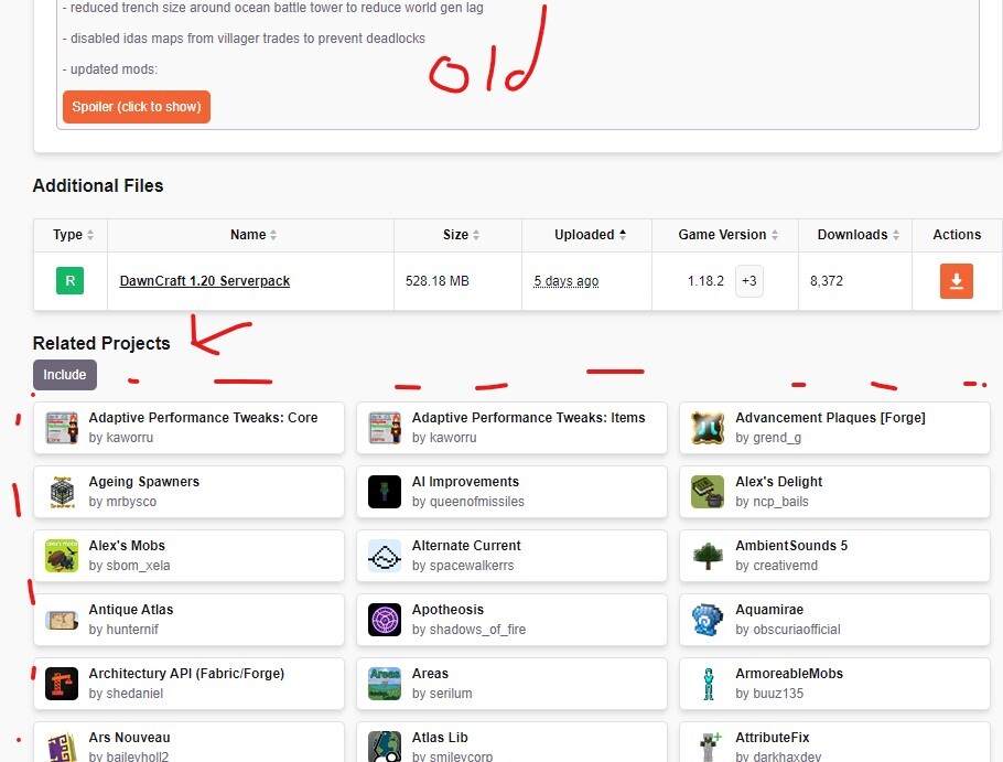 I mean the the list of related project´s in old website in the modpack like the image attached below.