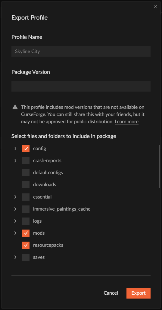 As of now, there is no option to select having a custom profile image when you export unless you publish/and have it approved by CurseForge. Adding the tick box option for custom profile images in the CurseForge App when exporting would let you showcase your own image when sharing modpacks with friends instead of it being a default picture and telling your friends to manually add it in. Its a simple yet personal touch, making your modpacks more appealing and encouraging more friends to try them out.