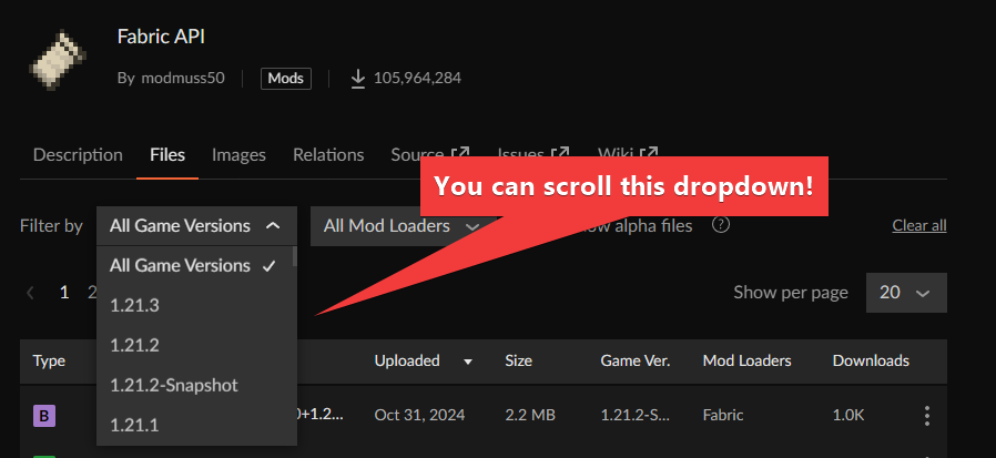 A user just told me that they didn't realise that they could scroll on the game version dropdown. Affordances should be added so that users know they can scroll.