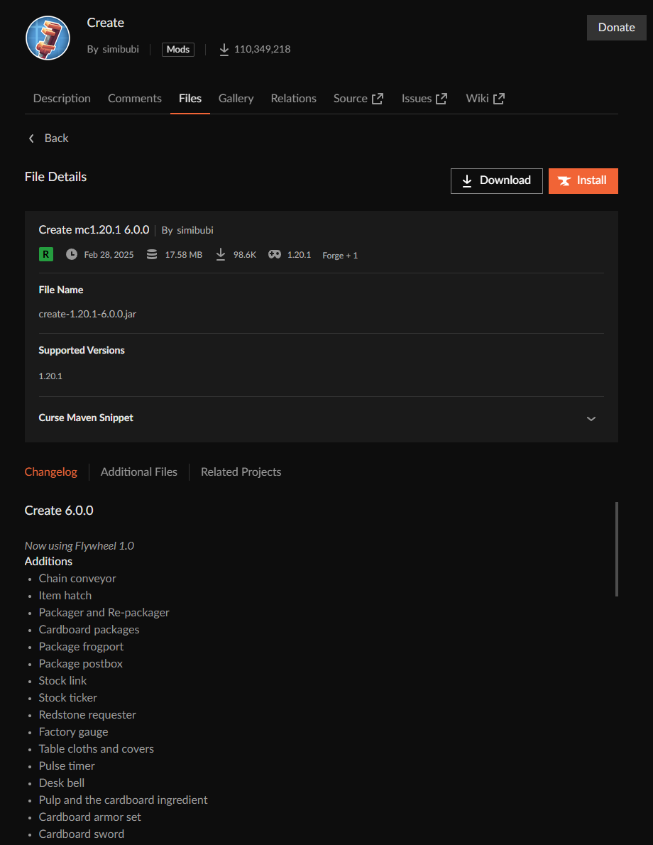 A parity request between the Curseforge website and the Curseforge application where clicking a specific version of a mod on a page's "Versions" tab would bring up the "File Details" of a mod version.