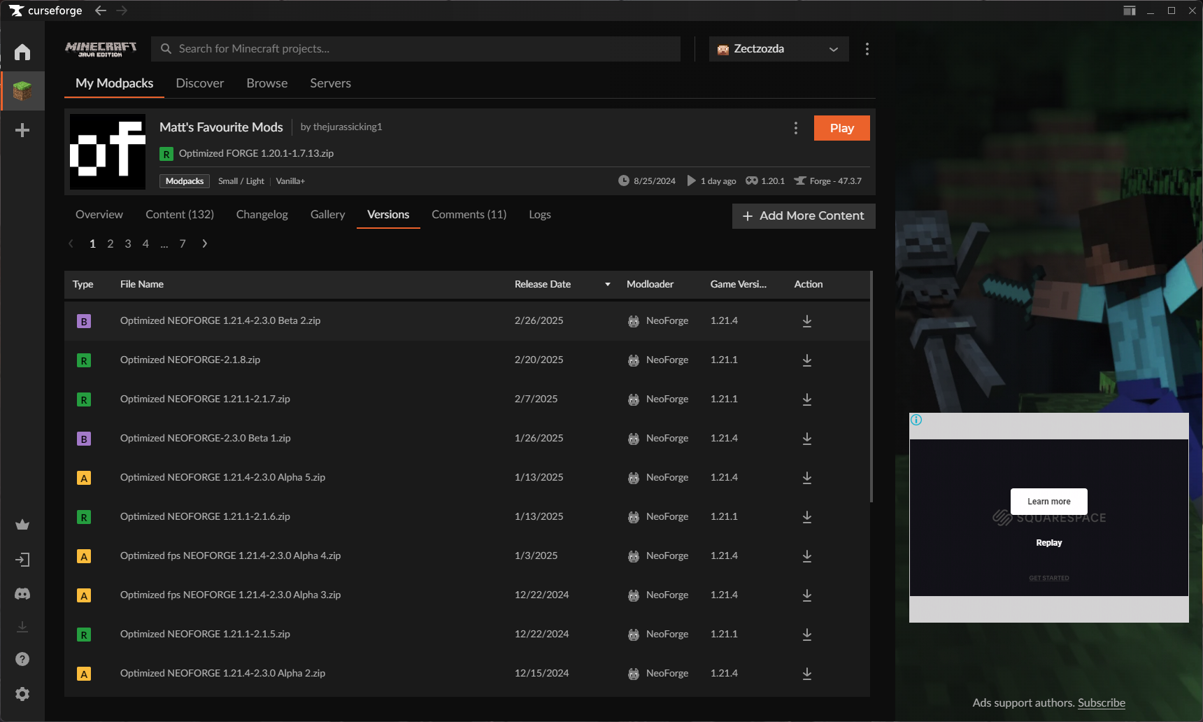 I think the most common use case of this feature would be that the end user will have many mods installed in a modpack, and they see that a few of those mods have an update. To help prevent crashes, world corruption, etc., the end user would create a version (or snapshot) of the modpack. This will allow the user to provide the version's name and select the mods they want to update individually. They can then change the whole profile but only apply it to the latest version. They can discard the newest version or roll back to any previous modpack version.