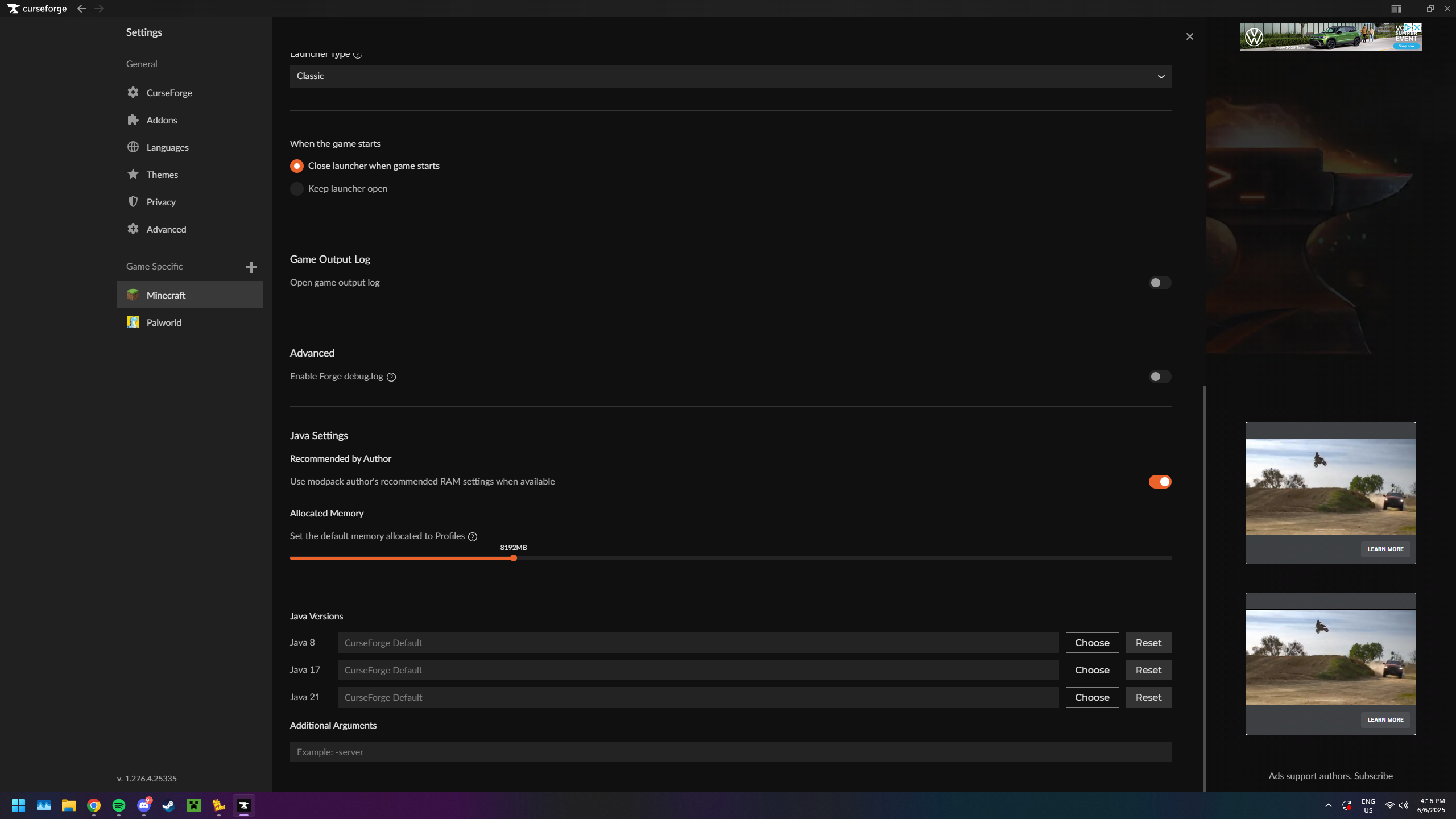 In Minecraft game settings (through curse forge) you can set the default ram allocation, every time you launch the game this will be your default JMV xmx argument. However there is no way to set the Xms argument making it so that it rolls back to 265mb whenever your relaunch the game (you need to reset it every time manually in the Minecraft launchers installations tab). Please add a second slider or make it so i can just set it to the same number. I would love to see this implemented.