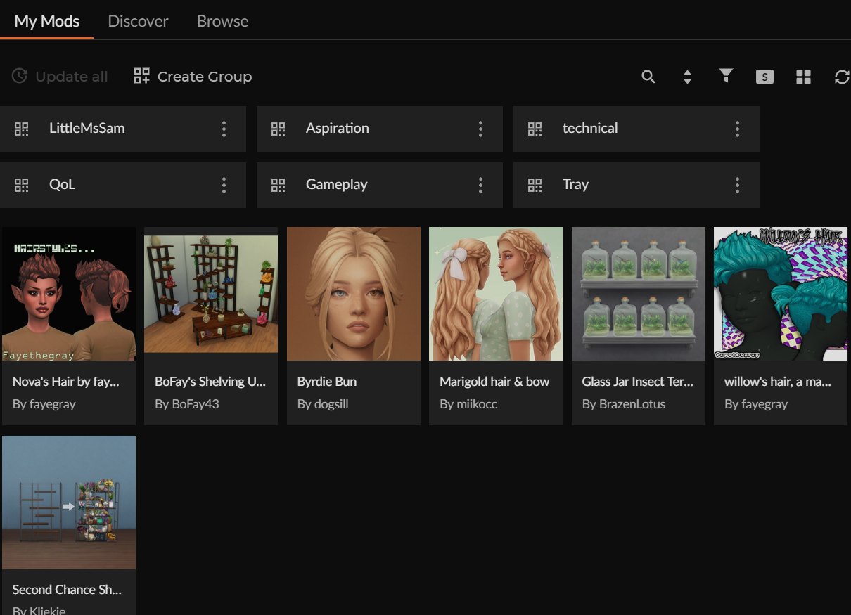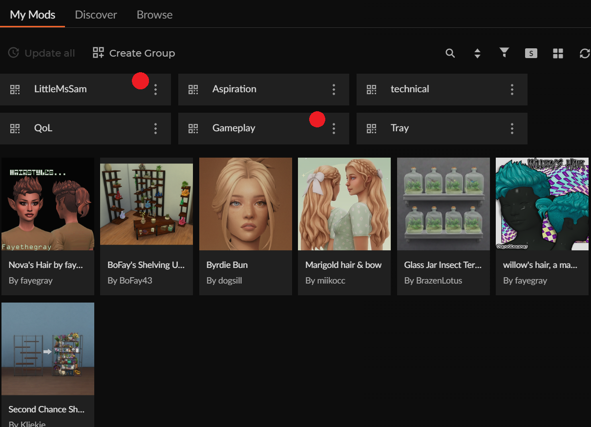 In the My Mods (mymods.png) page, show on a group if any mod inside it needs update with a little icon (mymods_example.png).